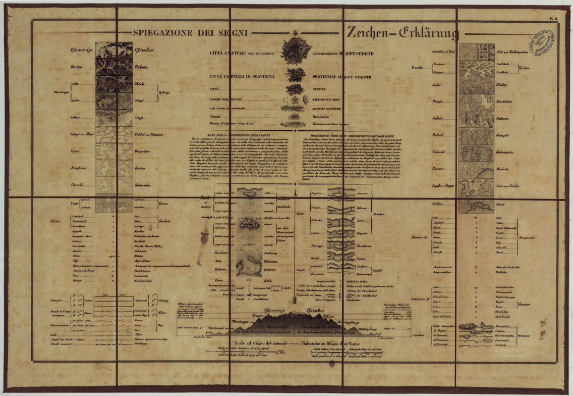 "SPIEGAZIONE DEI SEGNI CONVENZIONALI. Ventun fogli della stessa carta, non rettificata."