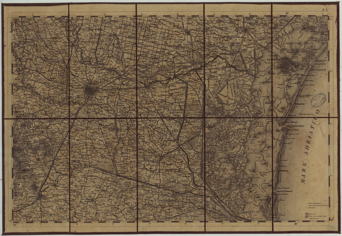 CARTA TOPOGRAFICA REGNO LOMBARDO-VENETO COSTRUTTA SOPRA MISURE ASTRONOMICO-TRIGONOMETRICHE ED INCISA A MILANO NELL'ISTITUO GEOGRAFICO MILTARE DELL'I.R. STATO MAGGIORE GENERALE AUSTRIACO. PUBBLICATA NELL'ANNO 1833 - FOGLIO F.5