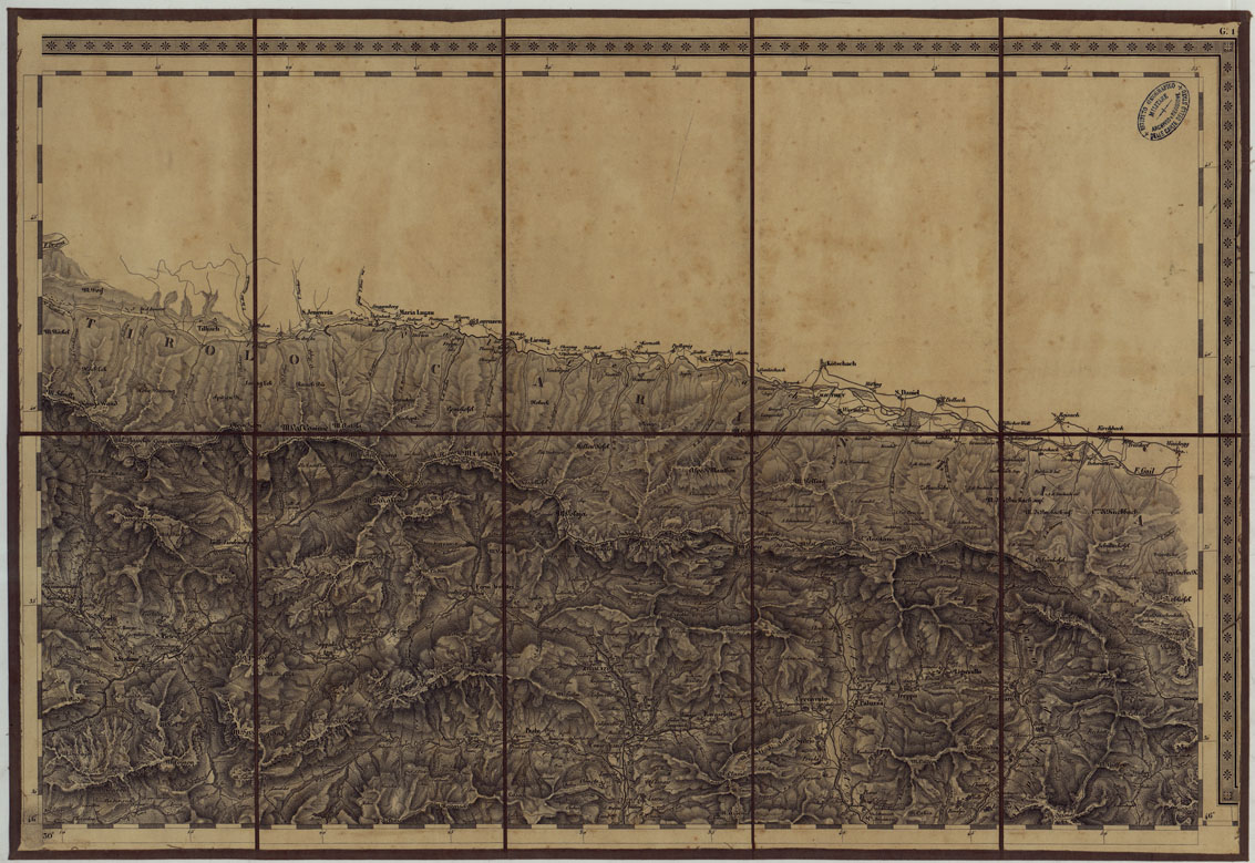 CARTA TOPOGRAFICA REGNO LOMBARDO-VENETO COSTRUTTA SOPRA MISURE ASTRONOMICO-TRIGONOMETRICHE ED INCISA A MILANO NELL'ISTITUO GEOGRAFICO MILTARE DELL'I.R. STATO MAGGIORE GENERALE AUSTRIACO. PUBBLICATA NELL'ANNO 1833 - FOGLIO G.1