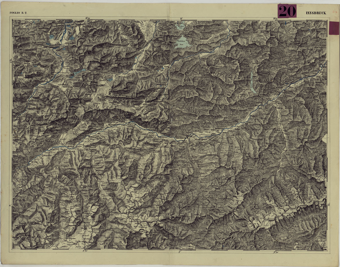 CARTA DEI VERSANTI DELLE ALPI RETICHE CARNICHE E GIULIE ALLA SCALA DI 1 AL 172.800 - FOGLIO B.2. INNSBRUCK