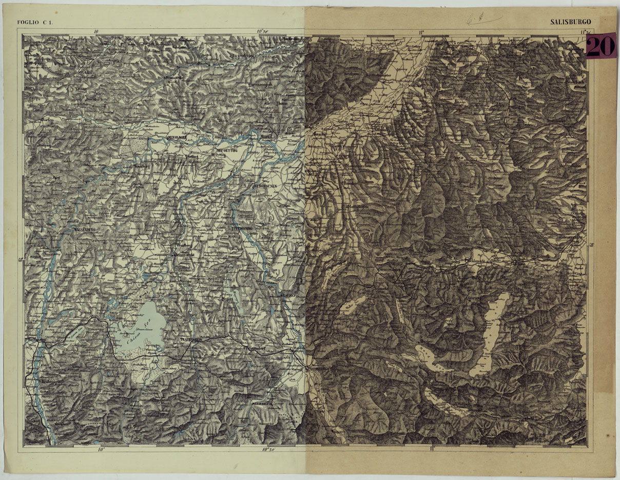 CARTA DEI VERSANTI DELLE ALPI RETICHE CARNICHE E GIULIE ALLA SCALA DI 1 AL 172.800 - FOGLIO C.1. SALISBURGO