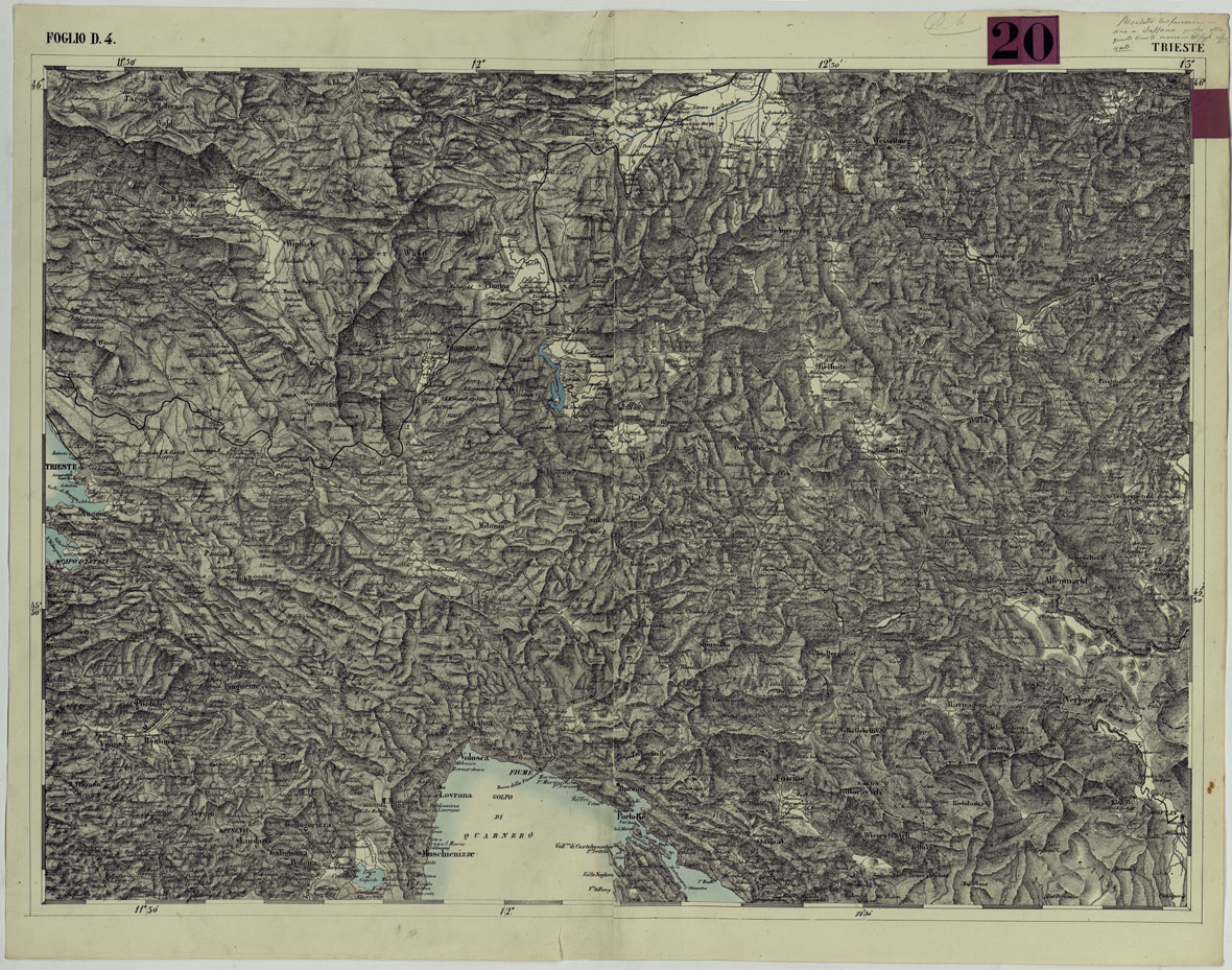 CARTA DEI VERSANTI DELLE ALPI RETICHE CARNICHE E GIULIE ALLA SCALA DI 1 AL 172.800 - FOGLIO D.4. TRIESTE