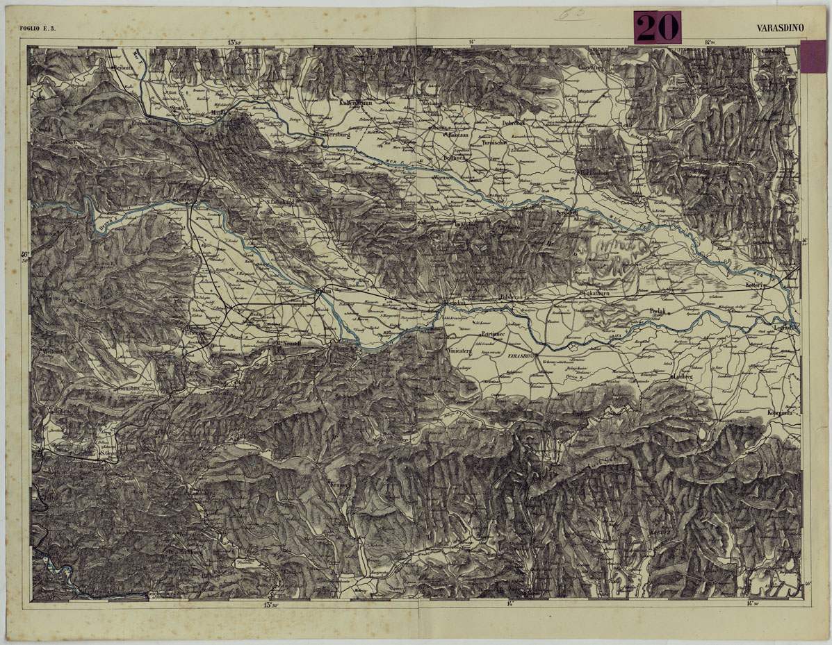 CARTA DEI VERSANTI DELLE ALPI RETICHE CARNICHE E GIULIE ALLA SCALA DI 1 AL 172.800 - FOGLIO E.3. VARASDINO