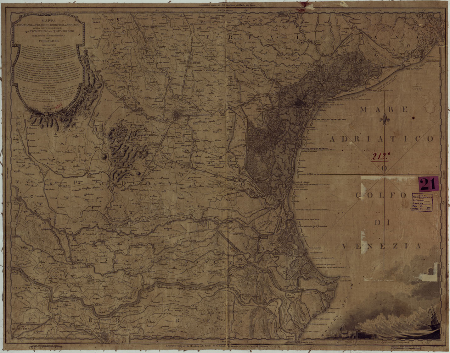 MAPPA DEL PADOVANO DEL POLESINE DI ROVIGO DEL DOGADO DELLA PARTE MERIDIONALE DEL VICENTINO DEL TREVIGIANO E DELLA PARTE SETTENTRIONALE DEL FERRARESE.