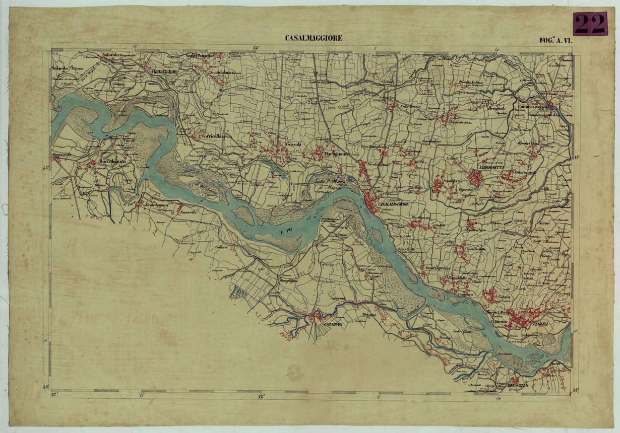 CARTA DELLA PARTE CENTRALE DELL'ALTA ITALIA AUTOGRAFATA NELL'UFFICIO TOPOGRAFICO DEL CORPO REALE DELLOSTATO MAGGIORE TORINO 1859 - FOG.A.VI. CASALMAGGIORE