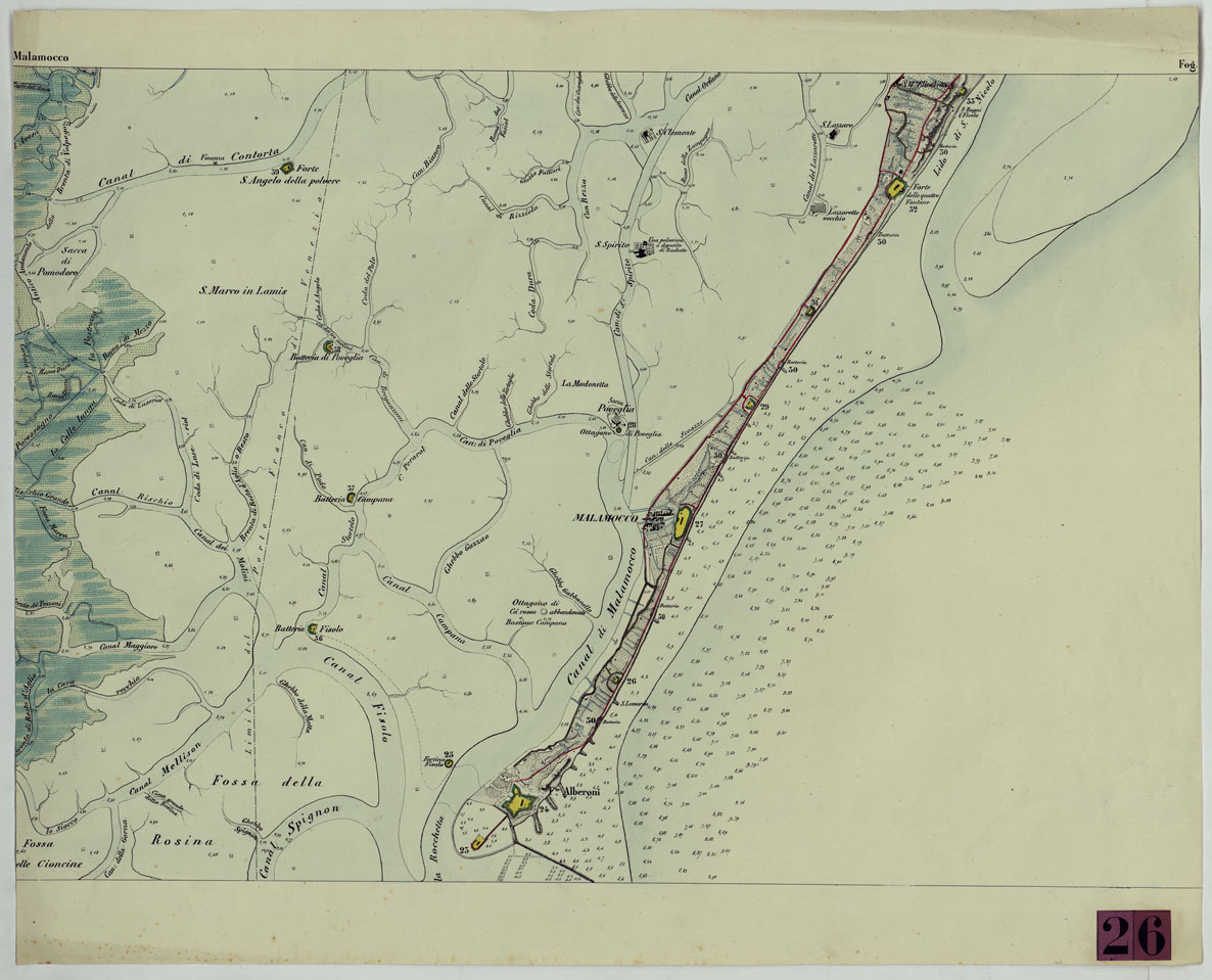 CARTA TOPOGRAFICA DELLA LAGUNA DI VENEZIA SCALA DI 1 A 20.000 - FOG. 13 MALAMOCCO