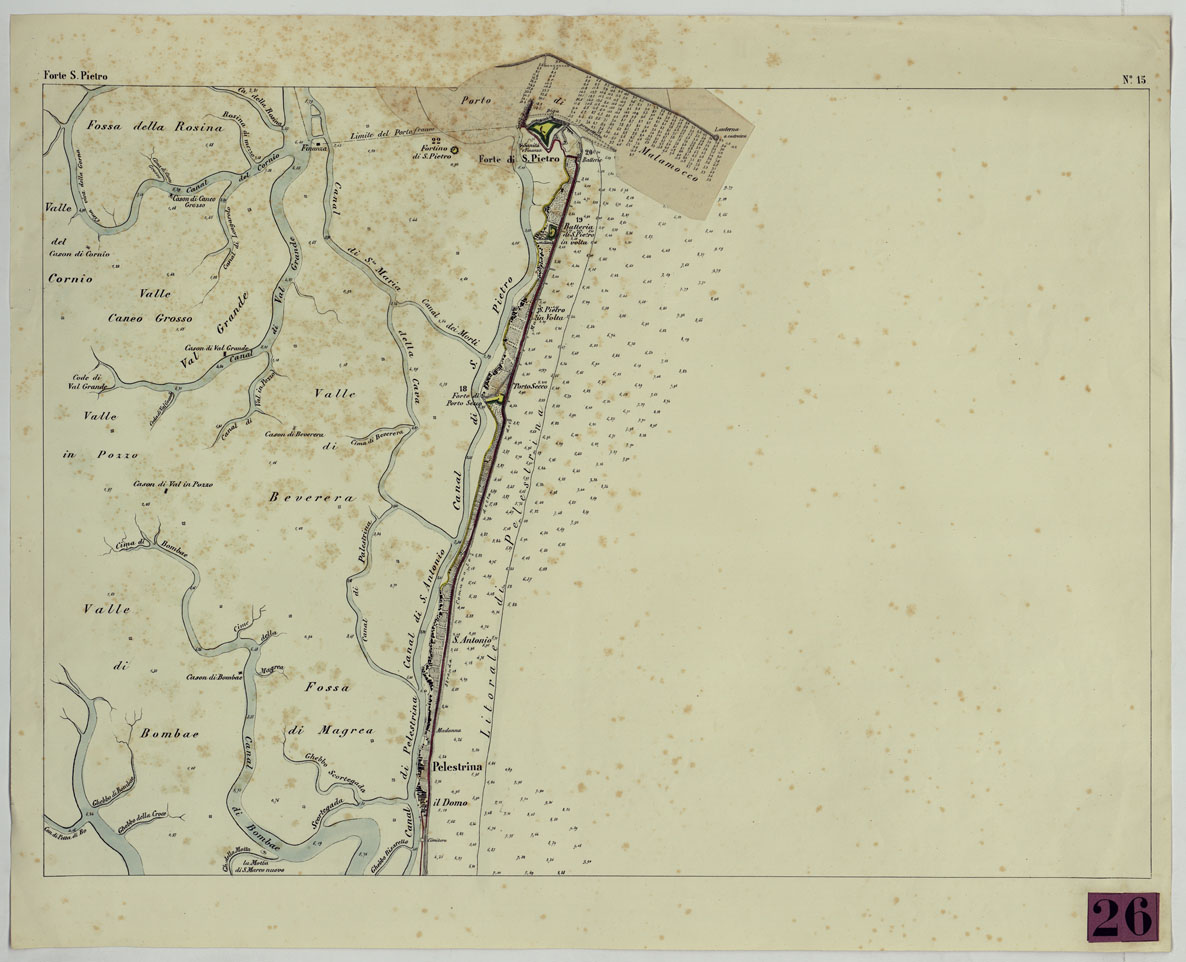 CARTA TOPOGRAFICA DELLA LAGUNA DI VENEZIA SCALA DI 1 A 20.000 - FOG. 15 FORTE SAN PIETRO