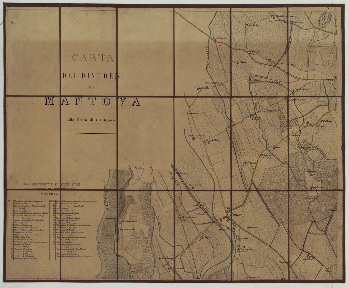 CARTA DEI DINTORNI DI MANTOVA ALLA SCALA DI 1 AL 10.000 - FOGLIO 1