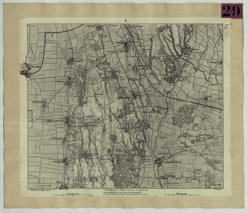 CARTA TOPOGRAFICA DEI CONTORNI DI MILANO RILEVATA D'IN SUL TERRENO E DISEGNATA NELLA PROPORZIONALE SCALA DI 1 A 25.000 DAL PRIMO TENENTE INGEGNERE GEOGRAFO PENSIONATO GIOVANNI BRENNA A. VALLARDI, EDIT. -TAVOLA 4