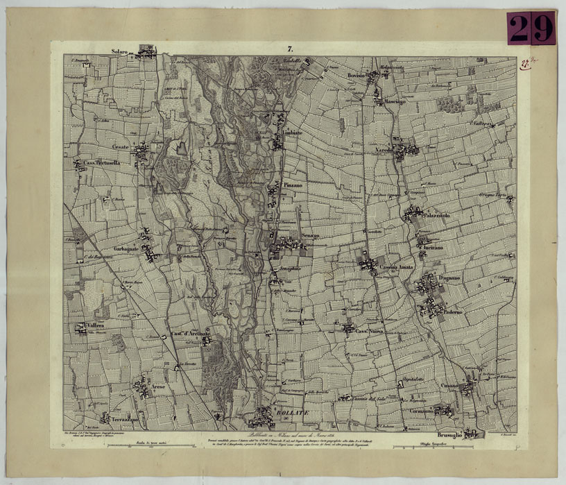 CARTA TOPOGRAFICA DEI CONTORNI DI MILANO RILEVATA D'IN SUL TERRENO E DISEGNATA NELLA PROPORZIONALE SCALA DI 1 A 25.000 DAL PRIMO TENENTE INGEGNERE GEOGRAFO PENSIONATO GIOVANNI BRENNA A. VALLARDI, EDIT. -TAVOLA 7