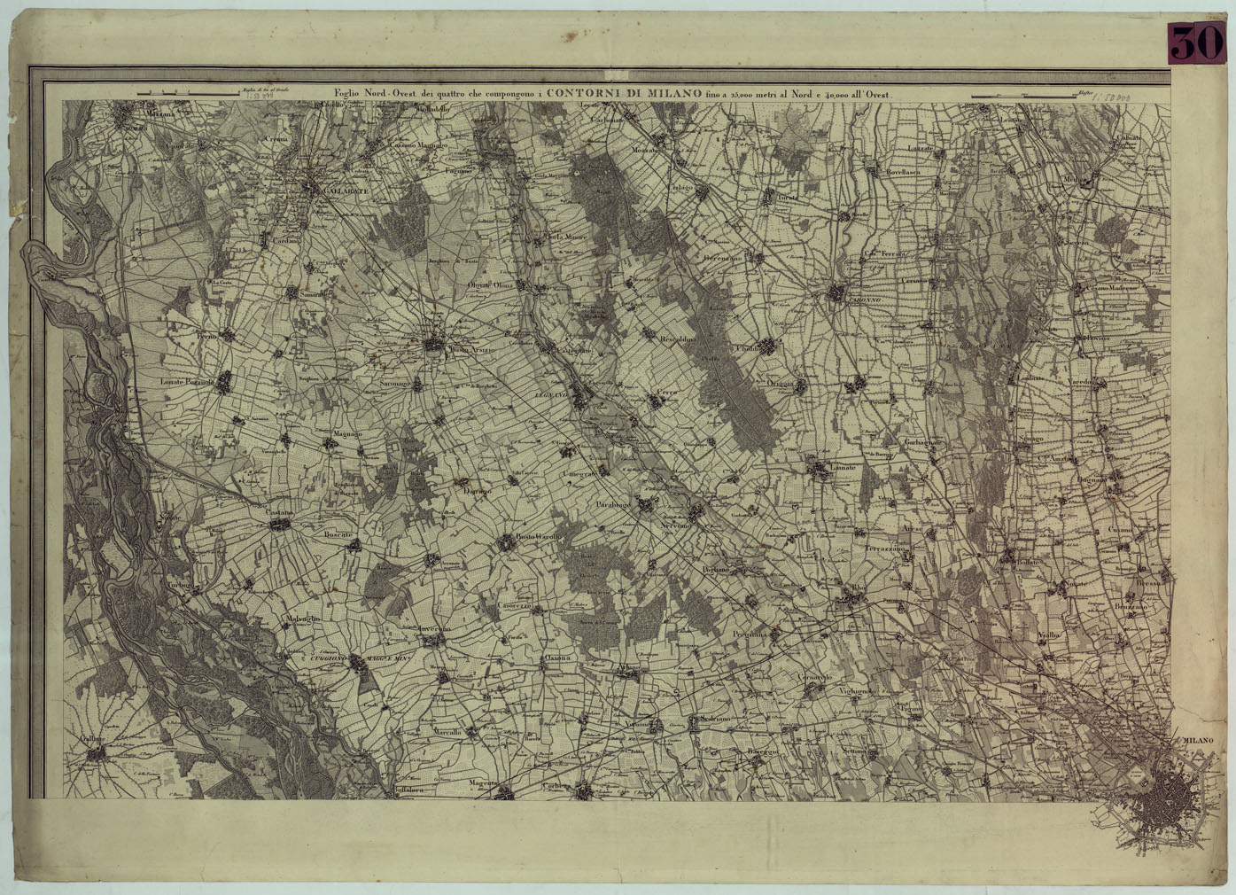 FOGLIO SUD-OVEST DEI QUATTRO CHE COMPONGONO I CONTORNI DI MILANO FINO A 25.000 METRI AL NORD E 40.000 ALL'EST.