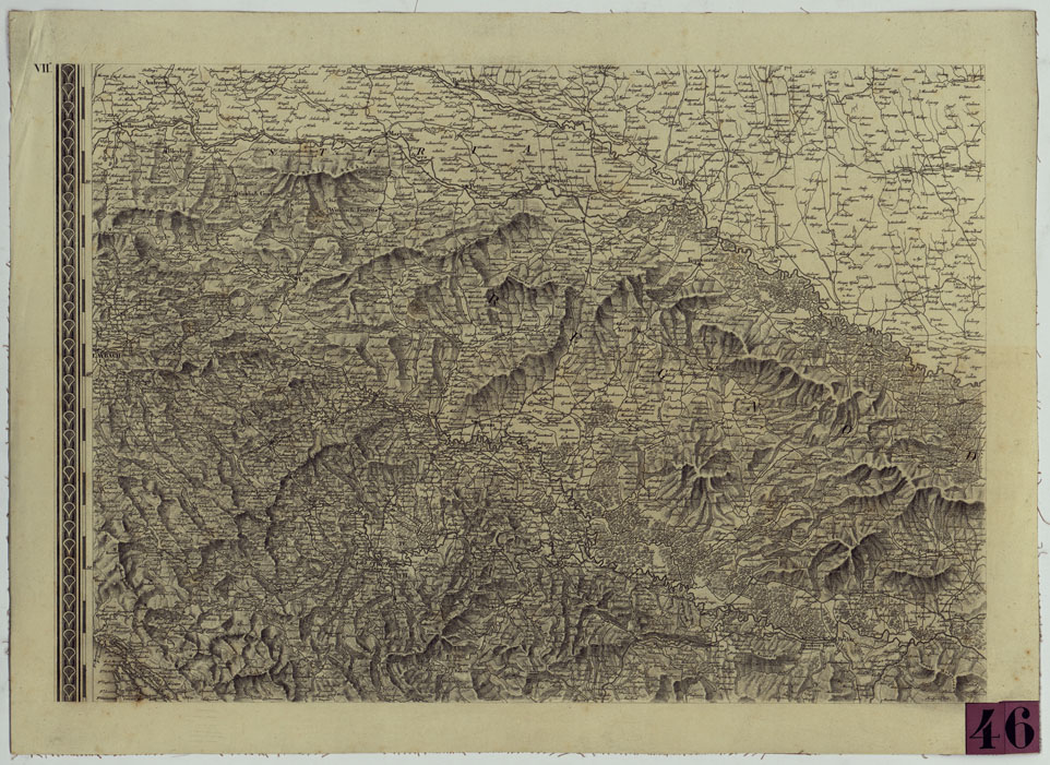 CARTA DELLE PROVINCIE ILLIRICHE CO' LORO DIVERSI STABILIMENTI E CON UNA PARTE DEGLI STATI LIMITROFI COMPILATAPER ORDINE SUPERIORE NEL DEPOSITO DELLA GUERRA DEL REGNO D'ITALIA NELL'ANNO MDCCCXIII - TAVOLA VII