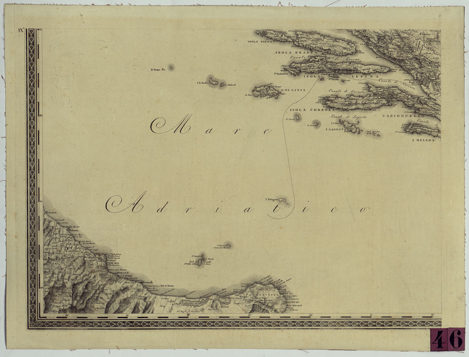 CARTA DELLE PROVINCIE ILLIRICHE CO' LORO DIVERSI STABILIMENTI E CON UNA PARTE DEGLI STATI LIMITROFI COMPILATAPER ORDINE SUPERIORE NEL DEPOSITO DELLA GUERRA DEL REGNO D'ITALIA NELL'ANNO MDCCCXIII - TAVOLA IX