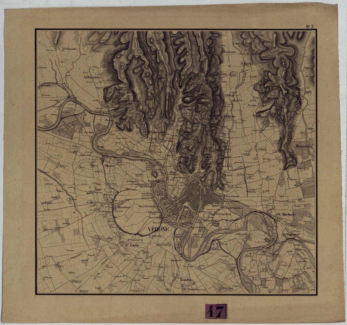 CARTE POUR SERVIR A L'INTELLIGENCE DES OPERATIONS MILITAIRES ENTRE LE CHIESE ET L'ADIGE GRAVEE SUR PIERRE PAR REGNER ET DOURDET 8 PASSAGE S.TE MARIE (R. DU BAC.) A' PARIS - TAVOLA D.2