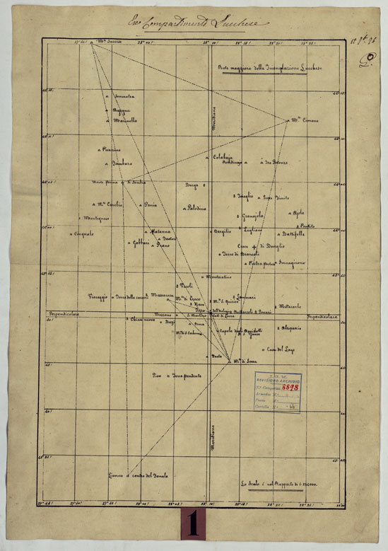 I rilevamenti topografici per la realizzazione della “Carta d´Italia&lrquo” iniziarono nel 1878: si trattava di un´opera così importante e lodevole che meritò la consapevole attenzione, non solo degli addetti ai lavori e delle categorie professionali coinvolte, ma anche delle più alte autorità del Regno.