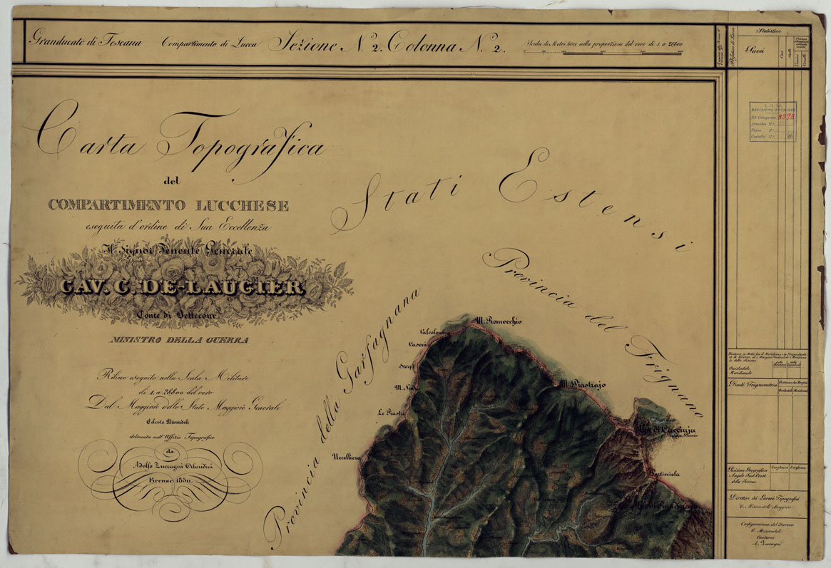 CARTA TOPOGRAFICA DEL COMPARTIMENTO LUCCHESE ESEGUITA D'ORDINE DI SUA ECCELLENZA IL SIGNOR TENENTE GENERALE CAV. G. DE LAUGIER CONTE DI BELLECOUR MINISTRO DELLA GUERRA - SEZIONE N. 2 COLONNA N. 2.