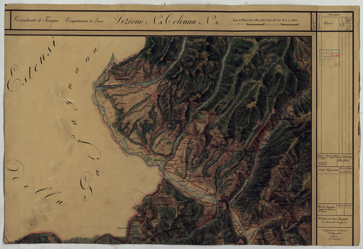 CARTA TOPOGRAFICA DEL COMPARTIMENTO LUCCHESE ESEGUITA D'ORDINE DI SUA ECCELLENZA IL SIGNOR TENENTE GENERALE CAV. G. DE LAUGIER CONTE DI BELLECOUR MINISTRO DELLA GUERRA - SEZIONE N. 3 COLONNA N. 2.