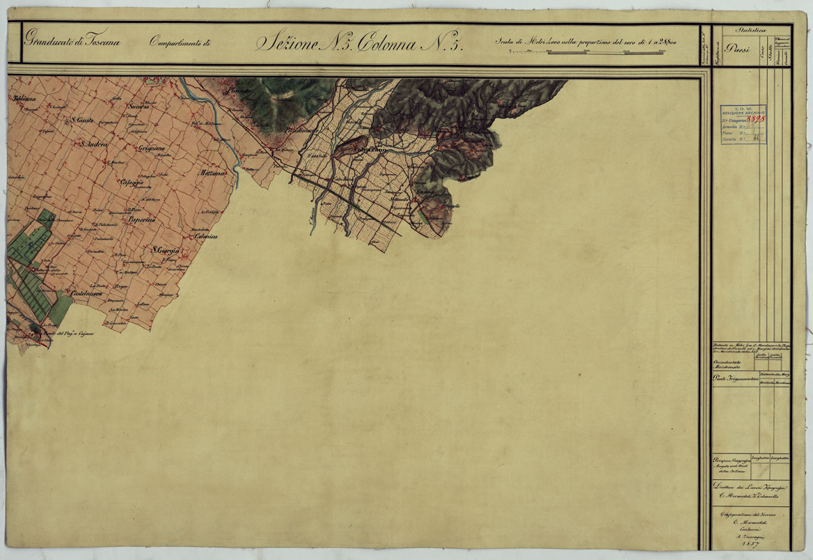 CARTA TOPOGRAFICA DEL COMPARTIMENTO LUCCHESE ESEGUITA D'ORDINE DI SUA ECCELLENZA IL SIGNOR TENENTE GENERALE CAV. G. DE LAUGIER CONTE DI BELLECOUR MINISTRO DELLA GUERRA - SEZIONE N. 5 COLONNA N. 5.