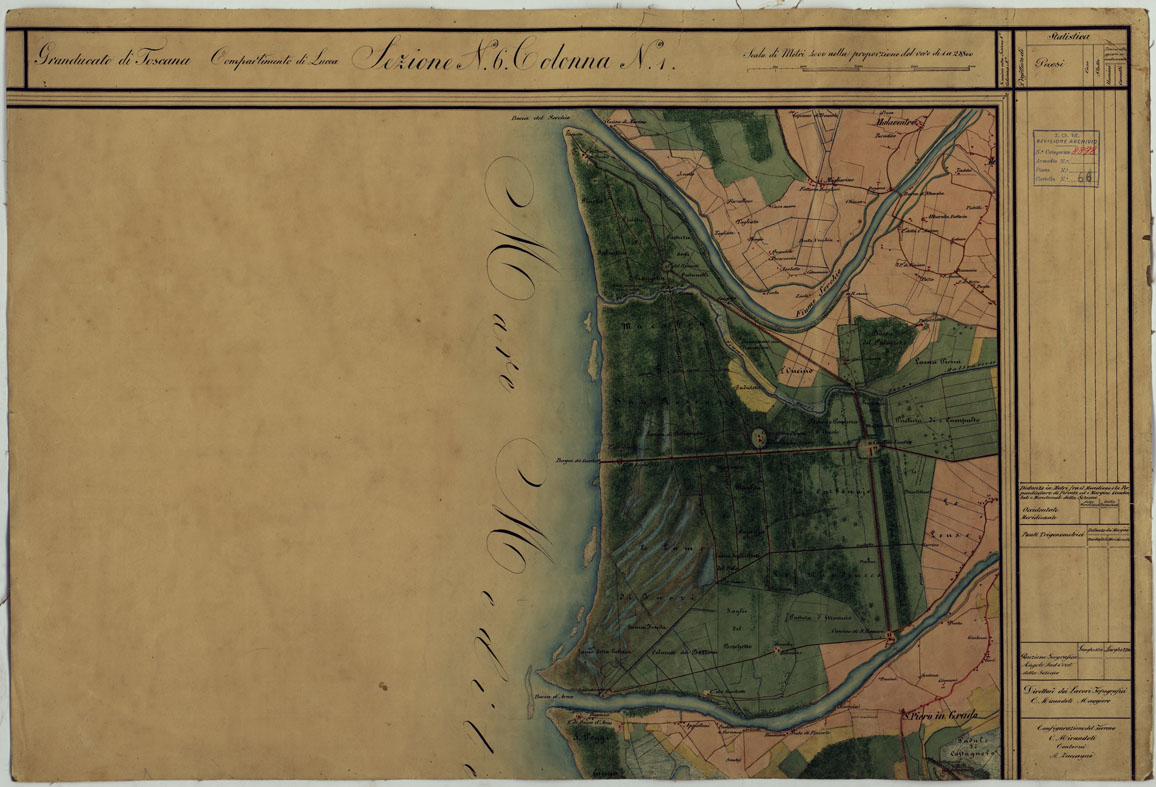 CARTA TOPOGRAFICA DEL COMPARTIMENTO LUCCHESE ESEGUITA D'ORDINE DI SUA ECCELLENZA IL SIGNOR TENENTE GENERALE CAV. G. DE LAUGIER CONTE DI BELLECOUR MINISTRO DELLA GUERRA - SEZIONE N. 6 COLONNA N. 1
