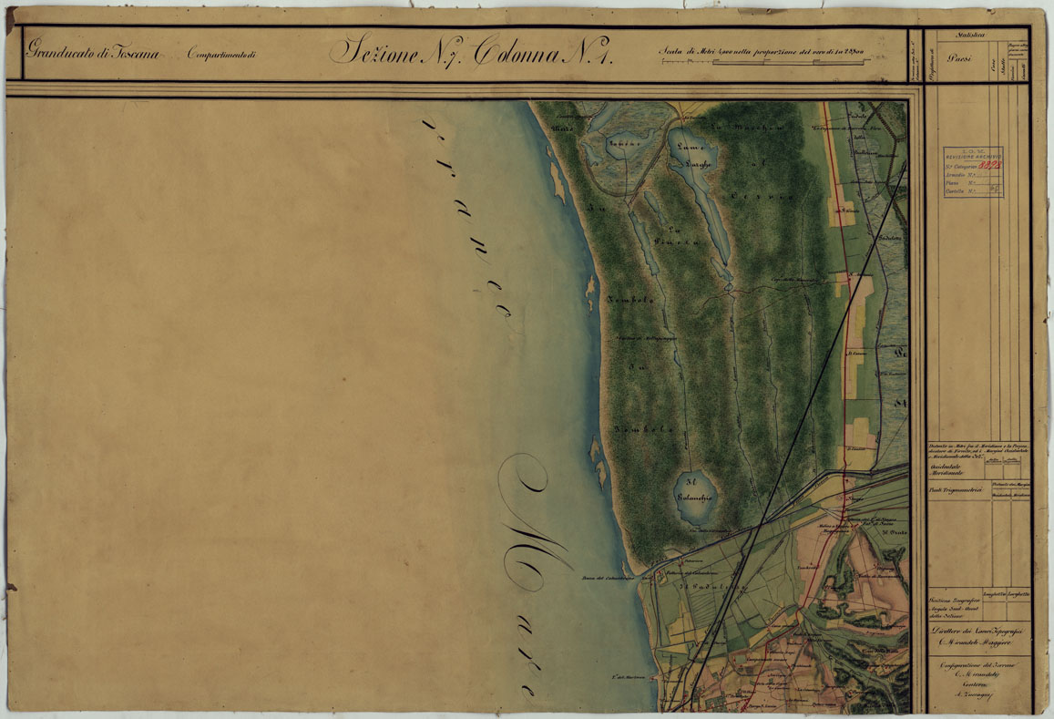 CARTA TOPOGRAFICA DEL COMPARTIMENTO LUCCHESE ESEGUITA D'ORDINE DI SUA ECCELLENZA IL SIGNOR TENENTE GENERALE CAV. G. DE LAUGIER CONTE DI BELLECOUR MINISTRO DELLA GUERRA - SEZIONE N. 7 COLONNA N. 1.