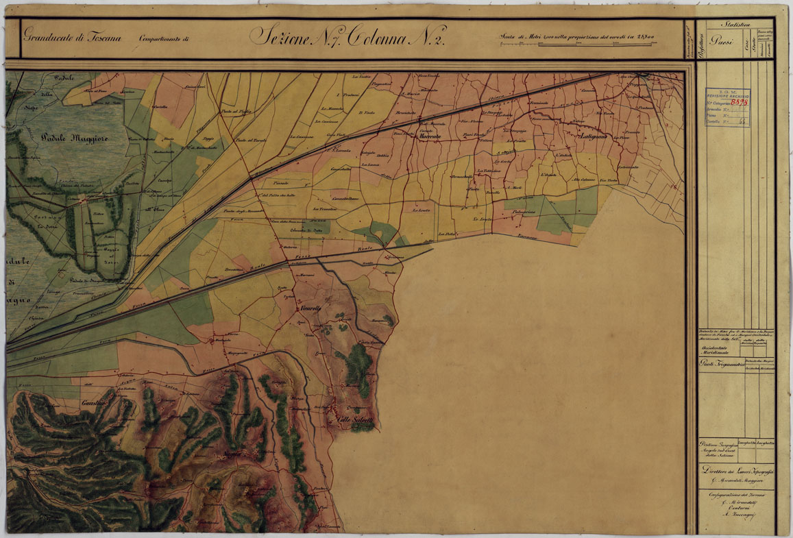 CARTA TOPOGRAFICA DEL COMPARTIMENTO LUCCHESE ESEGUITA D'ORDINE DI SUA ECCELLENZA IL SIGNOR TENENTE GENERALE CAV. G. DE LAUGIER CONTE DI BELLECOUR MINISTRO DELLA GUERRA - SEZIONE N. 7 COLONNA N. 2.
