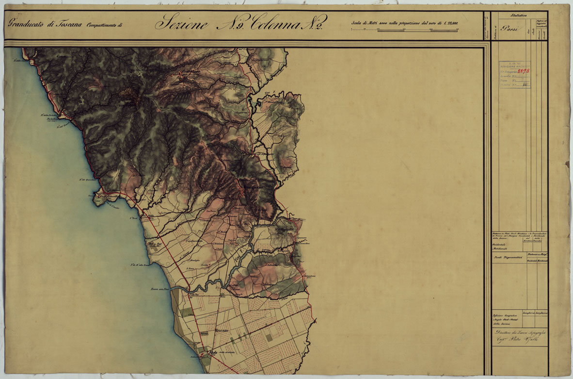 CARTA TOPOGRAFICA DEL COMPARTIMENTO LUCCHESE ESEGUITA D'ORDINE DI SUA ECCELLENZA IL SIGNOR TENENTE GENERALE CAV. G. DE LAUGIER CONTE DI BELLECOUR MINISTRO DELLA GUERRA - SEZIONE N. 9 COLONNA N. 2.