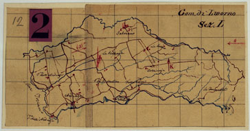 "Sono sessantanove pezzi, disegnati su carta lucida e montati su carta solida. Disegni ricavati da catasti riconosciuti sul terreno: rappresentano l'abbozzo della sola planimetria a colori, azzurro per l'idrografia, rosso per i centri abitati e la rete stradale. Tre fogli più completi, quelli di Fucecchio, Rosignano e Calenzano, rappresentano l'orografia mediante tratteggio a luce zenitale. Sono datati al 1858 e recano la firma del Capitano L. Valle, succeduto al Mirandoli nella direzione dell'Uffizio Topografico Militare. (Cfr. Mori A. La cartografia ufficiale, ecc., pagg 71-72). N° 11 disegni di Livorno."
