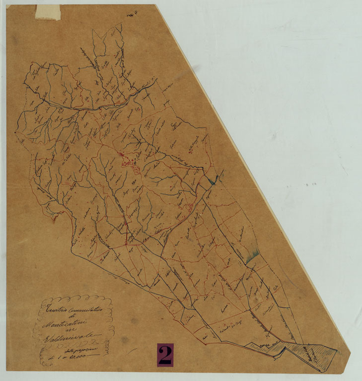 "Sono sessantanove pezzi, disegnati su carta lucida e montati su carta solida. Disegni ricavati da catasti riconosciuti sul terreno: rappresentano l'abbozzo della sola planimetria a colori, azzurro per l'idrografia, rosso per i centri abitati e la rete stradale. Tre fogli più completi, quelli di Fucecchio, Rosignano e Calenzano, rappresentano l'orografia mediante tratteggio a luce zenitale. Sono datati al 1858 e recano la firma del Capitano L. Valle, succeduto al Mirandoli nella direzione dell'Uffizio Topografico Militare. (Cfr. Mori A. La cartografia ufficiale, ecc., pagg 71-72)."
