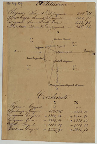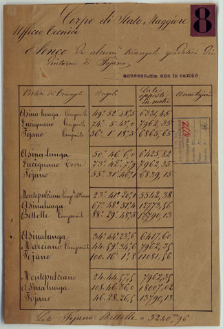 I rilevamenti topografici per la realizzazione della “Carta d´Italia&lrquo” iniziarono nel 1878: si trattava di un´opera così importante e lodevole che meritò la consapevole attenzione, non solo degli addetti ai lavori e delle categorie professionali coinvolte, ma anche delle più alte autorità del Regno.