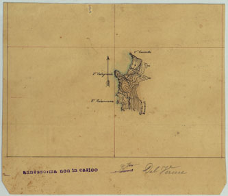 "Sette minute di campagna, montate su cartone, dei rilevamenti eseguiti nel 1862, alla scala di 1:10.000 da Ufficiali di S. M. Rappresentano l'orografia a curve di livello tracciate all'equidistanza di m. 5, gli abitati in rosso, le acque in azzurro. Annesso un quadro d'unione con i nomi degli operatori e una busta contenente sette piccoli disegni."