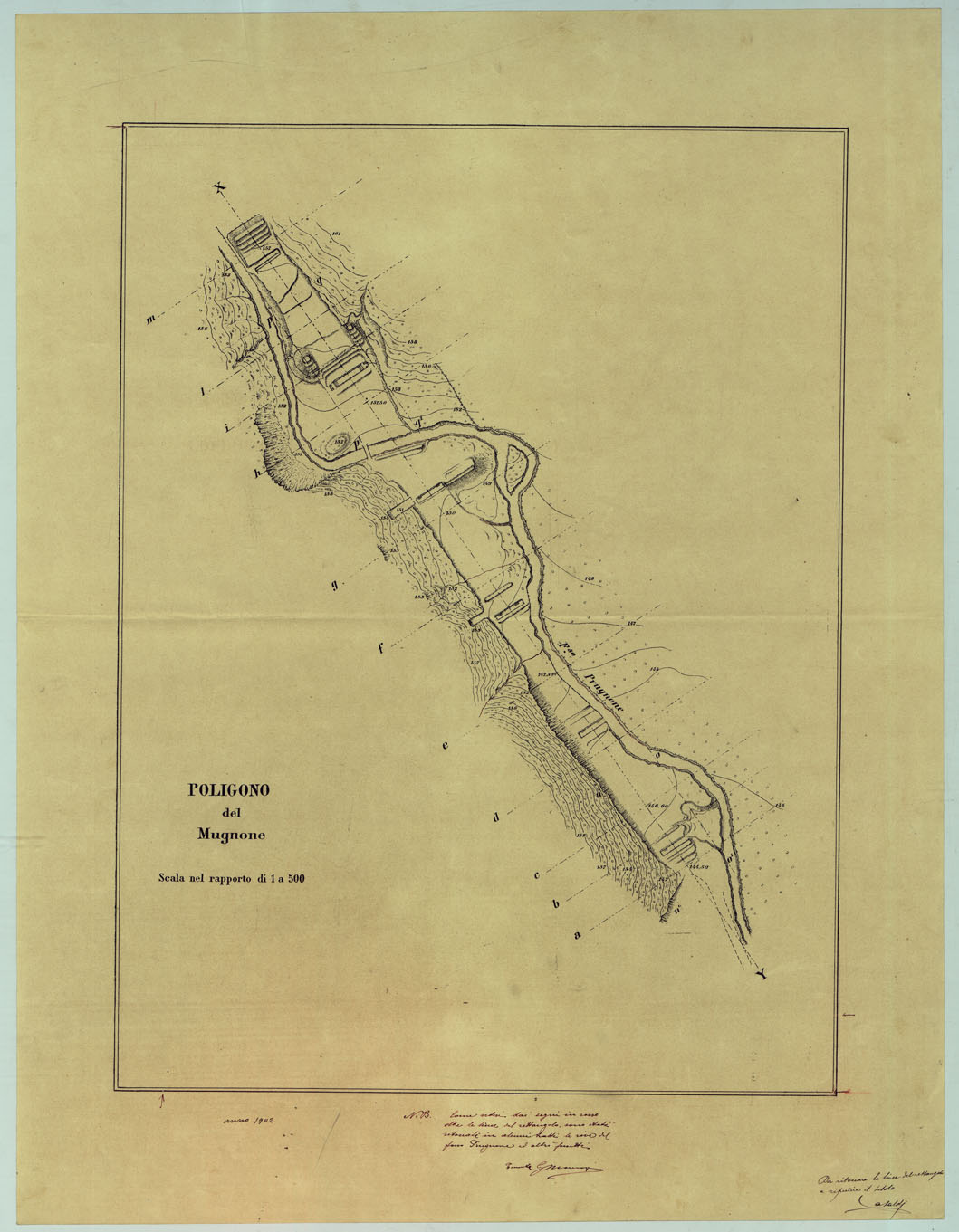 "Scala nel rapporto di 1:500. Data manoscritta 1902. Stampa in nero con correzioni manoscritte. Cfr. anche il Doc. 8948 analogo a questo."