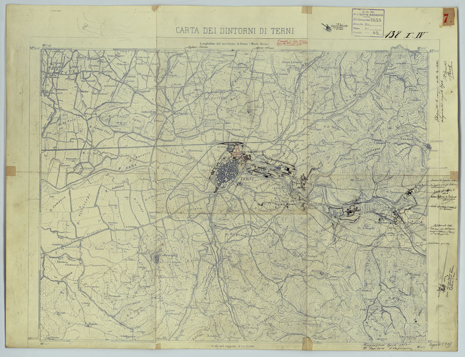 "Gruppo di sette carte alla scala di 1:25.000 di epoche diverse. L'orografia è rappresentata a curve di livello. Non presente sul catalogo ragionato."