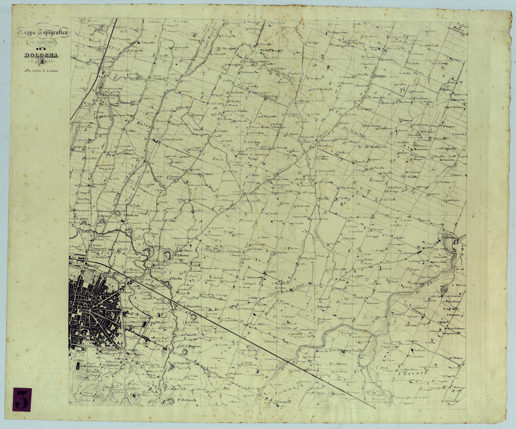 MAPPA TOPOGRAFICA DEI DINTORNI DI BOLOGNA.