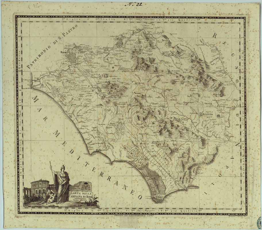 "Carta consimile a quella di cui al N° 62 d'ordine (Cart. d'Arch. N° 70/1, Docum. N° 6 - File A0001272). Rappresenta il territorio a sud di Roma fino a Terracina."