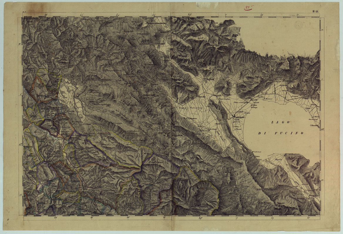 "Dodici fogli estendetisi da Radicofani (nord) a Terracina (sud) e dal Lago di Fucino (est) al Monte Argentario (ovest). Riproduzione autografia con colori a mano per le circoscrizioni. Uno dei fogli contiene un prospetto di quote altimetriche di vari punti trigonometrici nel Granducato di Toscana. "