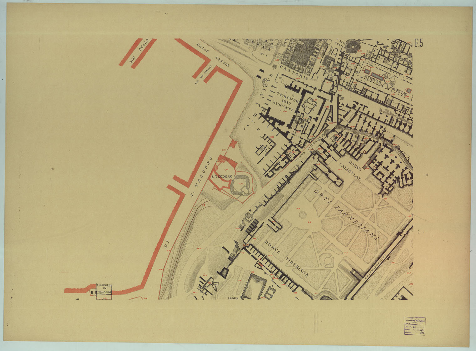 R. ACCADEMIA DEI LINCEI. PROF. VINCENZO REINA MEDIA PARS VRBIS RILIEVO PLANIMETRICO ED ALTIMETRICO ESEGUITO DAGLI ALLIEVI DELLA SCUOLA D'APPLICAZIONE PER GLI INGEGNERI IN ROMA COLLA GUIDA DEL PROF. U. BARBIERI DELL'ING. C. CASSINIS. ROMA.