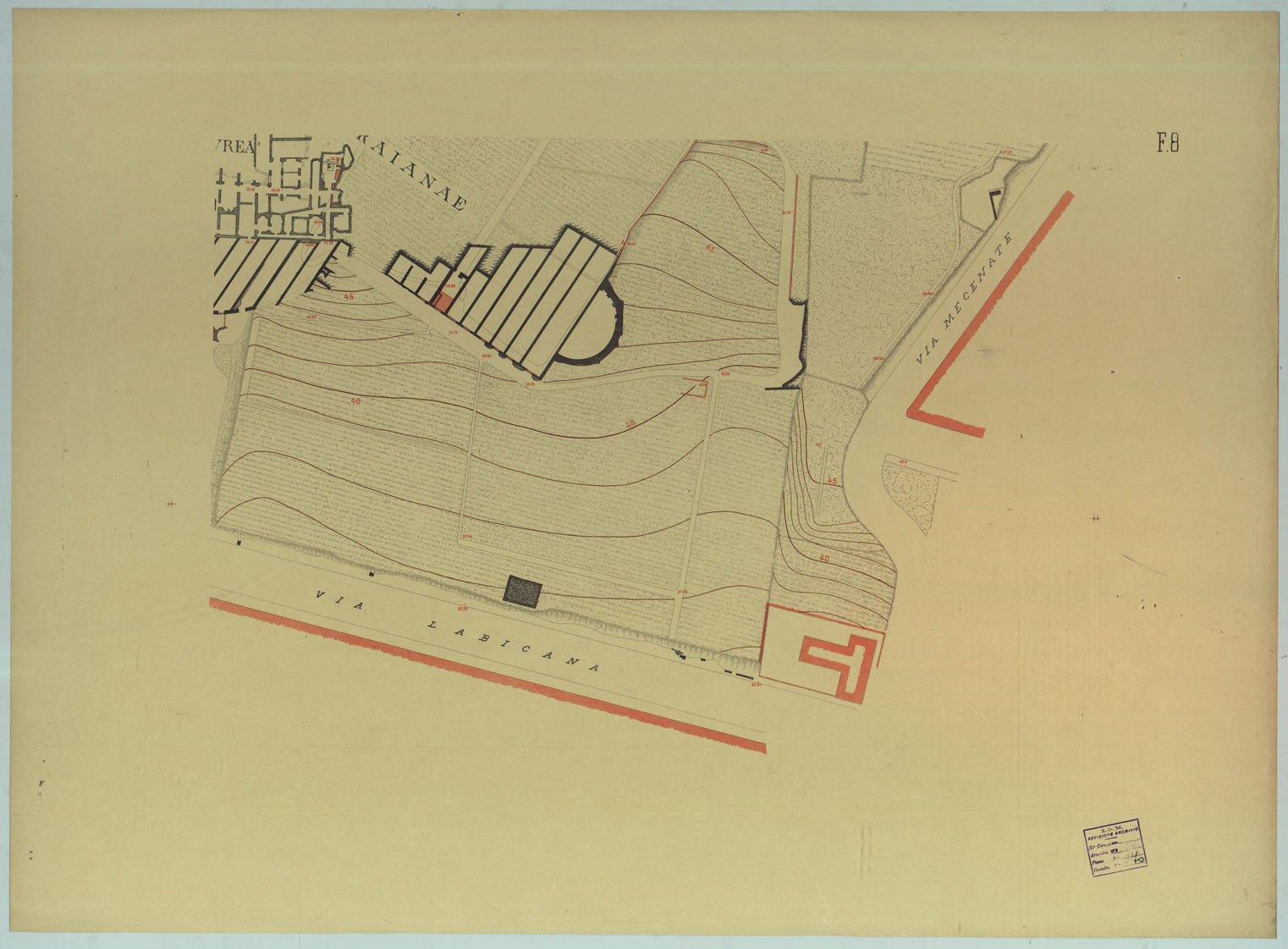 R. ACCADEMIA DEI LINCEI. PROF. VINCENZO REINA MEDIA PARS VRBIS RILIEVO PLANIMETRICO ED ALTIMETRICO ESEGUITO DAGLI ALLIEVI DELLA SCUOLA D'APPLICAZIONE PER GLI INGEGNERI IN ROMA COLLA GUIDA DEL PROF. U. BARBIERI DELL'ING. C. CASSINIS. ROMA.
