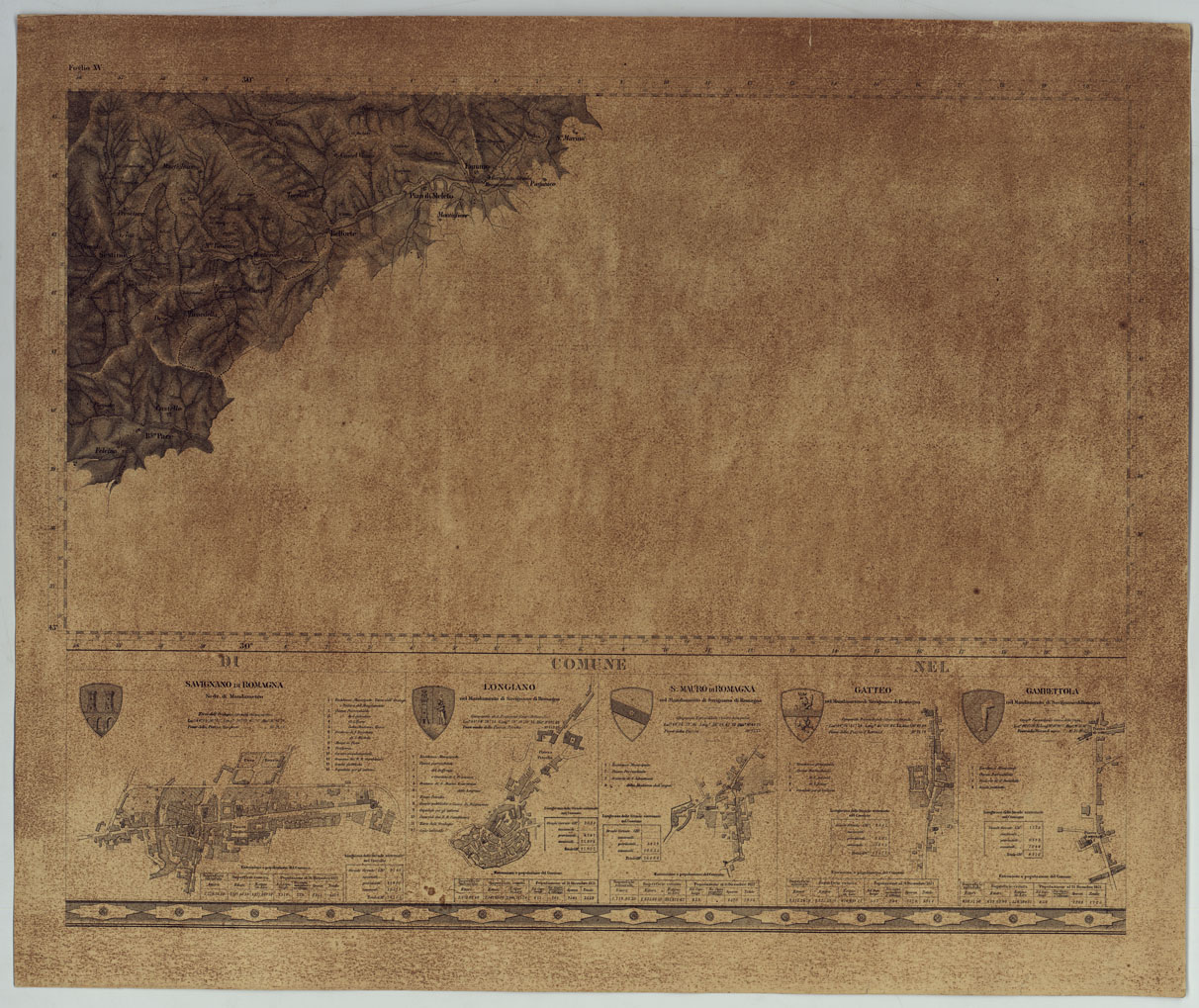 CARTA TOPOGRAFICA DELLA PROVINCIA DI FORLI' COL TERRITORIO DELLA REPUBBLICA DI S. MARINO E CON PARTE DI QUELLO DELLE FINITIME PROVINCIE DI FIRENZE, AREZZO, PESARO E RAVENNA - FOGLIO XV.