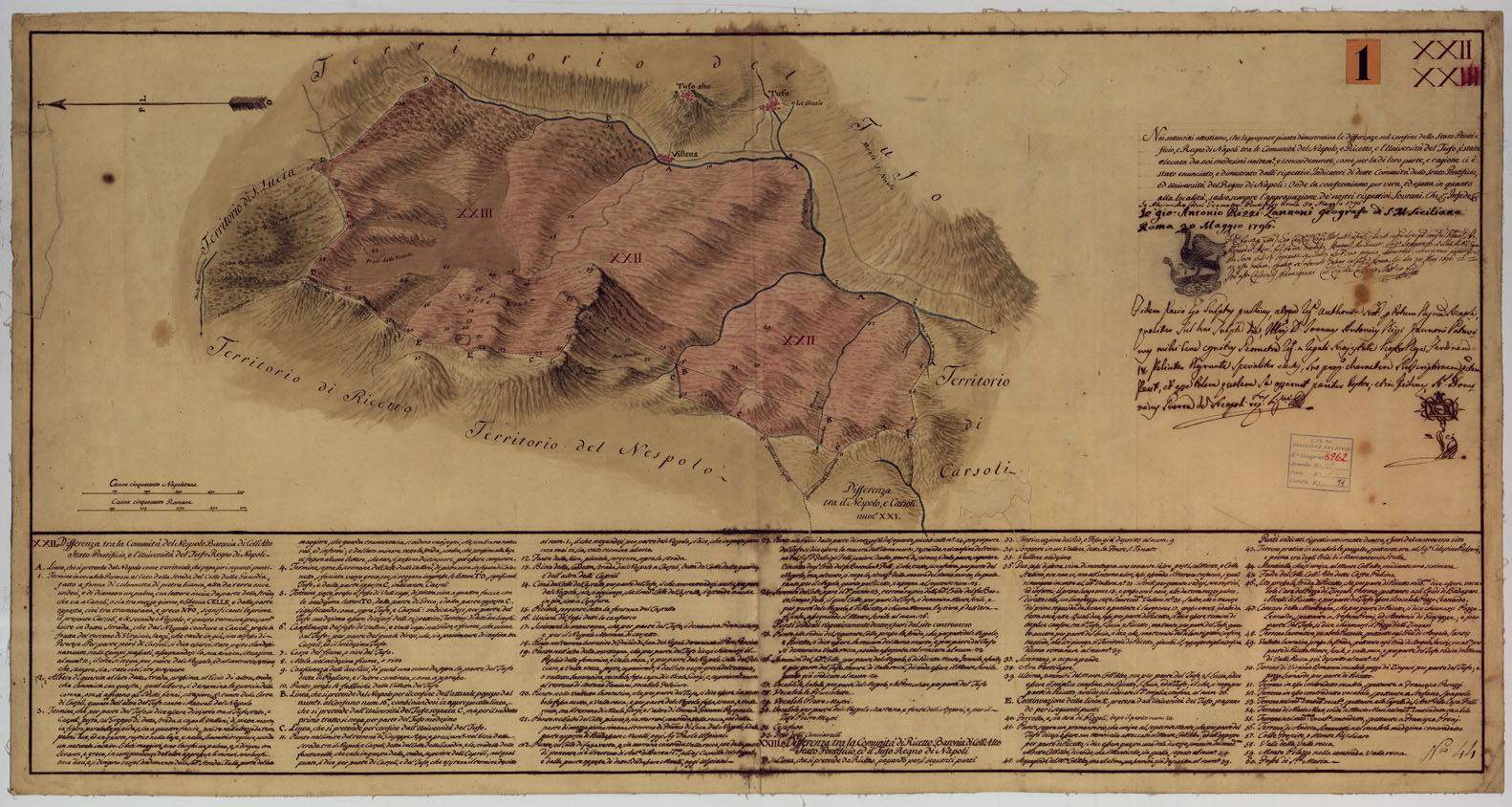 Delimitazione di Confine tra il Reame di Napoli e lo Stato Pontificio 1° nel territorio Pontificie di Camerata e Cervara e a quella di Rocca di Botte nel Regno di Napoli - Tav. XXII-XXIII