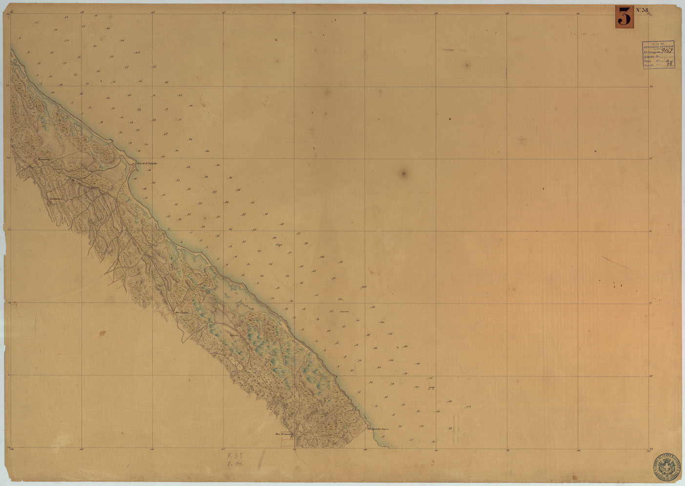 CARTA RILIEVI DELLE COSTE DELL'ADRIATICO DAL FIUME TRONTO A GAGLIANO DEL CAPO DI S.TA MARIA DI LEUCA - FOGLIO 38