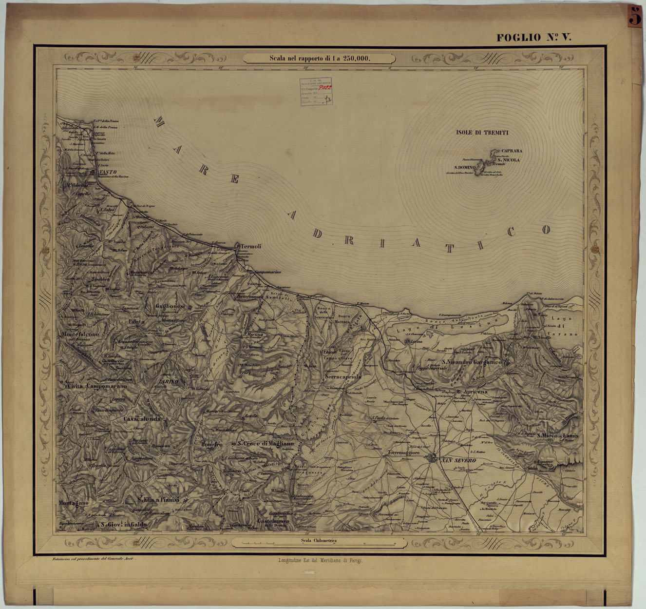 CARTA DELLE PROVINCIE NAPOLETANE IN 25 FOGLI COL PROCEDIMENTO DEL GENERALE AVET ALLA SCALA DI 1 250.000 PUBBLICATA DALL'ISTITUTO TOPOGRAFICO MILITARE 1874 - FOGLIO V.