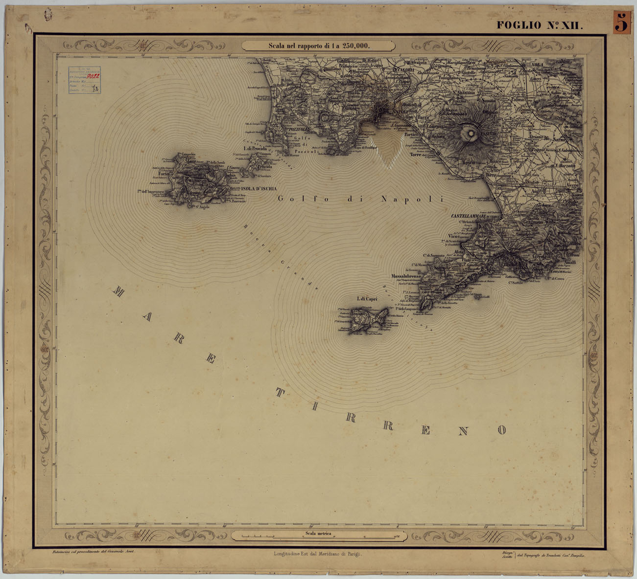 CARTA DELLE PROVINCIE NAPOLETANE IN 25 FOGLI COL PROCEDIMENTO DEL GENERALE AVET ALLA SCALA DI 1 250.000 PUBBLICATA DALL'ISTITUTO TOPOGRAFICO MILITARE 1874 - FOGLIO XII.
