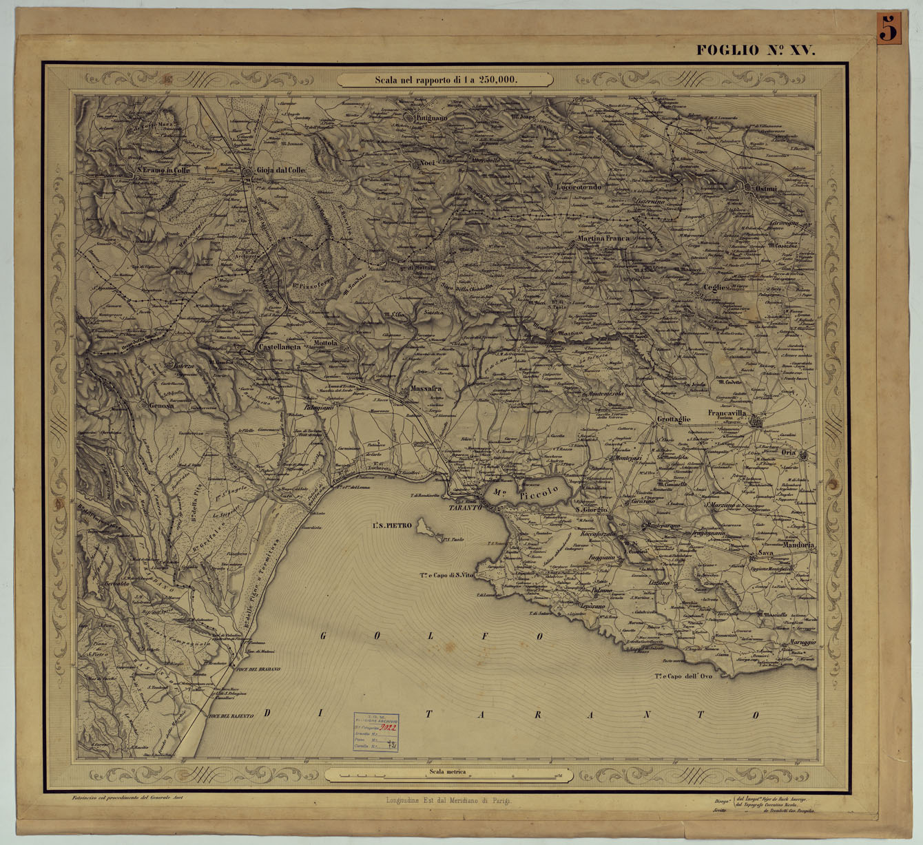 CARTA DELLE PROVINCIE NAPOLETANE IN 25 FOGLI COL PROCEDIMENTO DEL GENERALE AVET ALLA SCALA DI 1 250.000 PUBBLICATA DALL'ISTITUTO TOPOGRAFICO MILITARE 1874 - FOGLIO XV.
