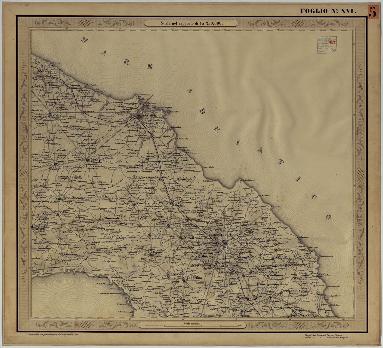 CARTA DELLE PROVINCIE NAPOLETANE IN 25 FOGLI COL PROCEDIMENTO DEL GENERALE AVET ALLA SCALA DI 1 250.000 PUBBLICATA DALL'ISTITUTO TOPOGRAFICO MILITARE 1874 - FOGLIO XVI.