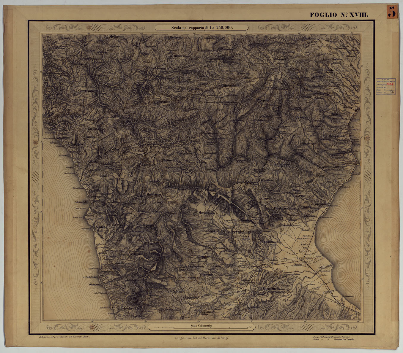 CARTA DELLE PROVINCIE NAPOLETANE IN 25 FOGLI COL PROCEDIMENTO DEL GENERALE AVET ALLA SCALA DI 1 250.000 PUBBLICATA DALL'ISTITUTO TOPOGRAFICO MILITARE 1874 - FOGLIO XVIII.