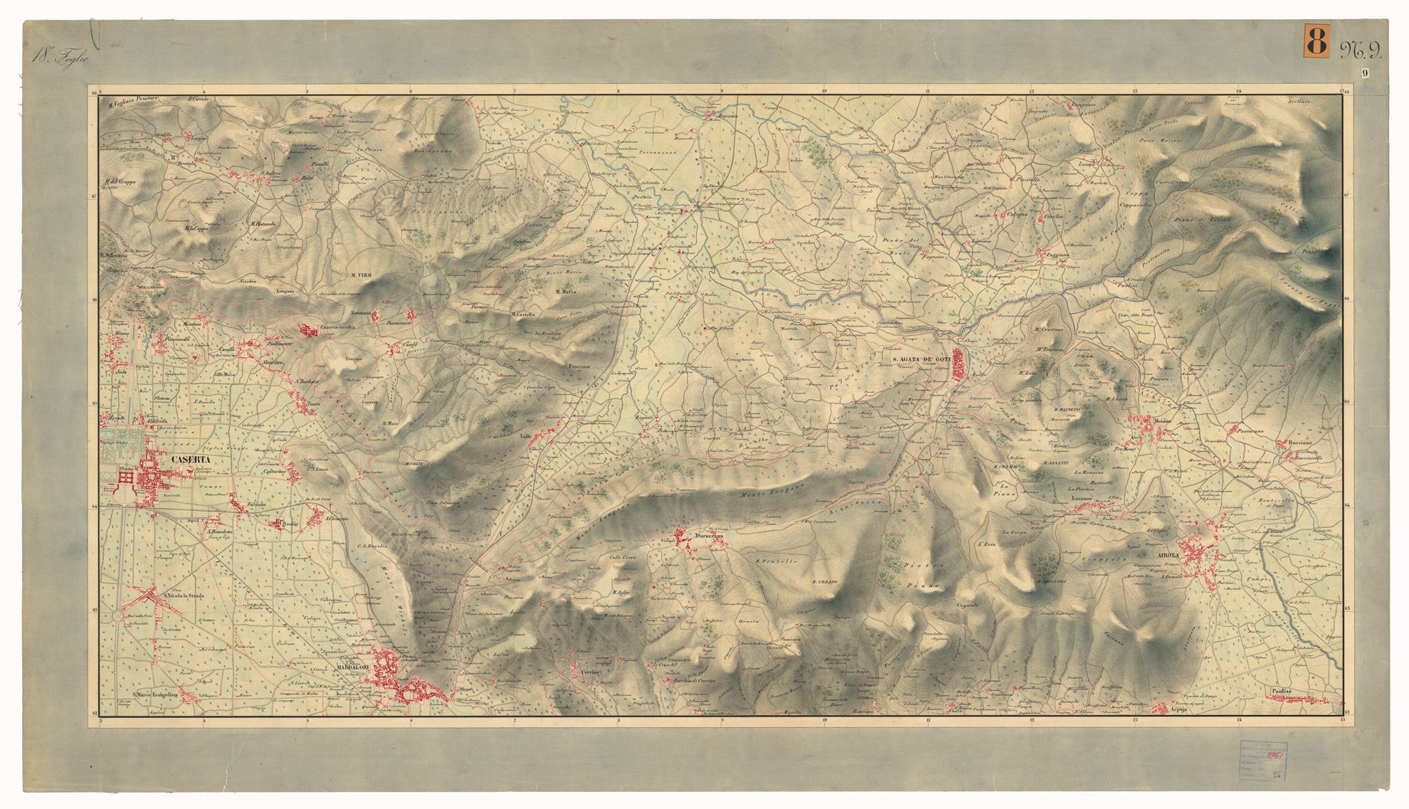 DISEGNI ORIGINALI DELLA CARTA DEI DINTORNI DI NAPOLI ALLA SCALA DI 1: 20.000 ESEGUITI NELL'UFFICIO TOPOGRAFICO DELL'EX - REGNO DI NAPOLI 1836-40 - FOGLIO 18° N.9.