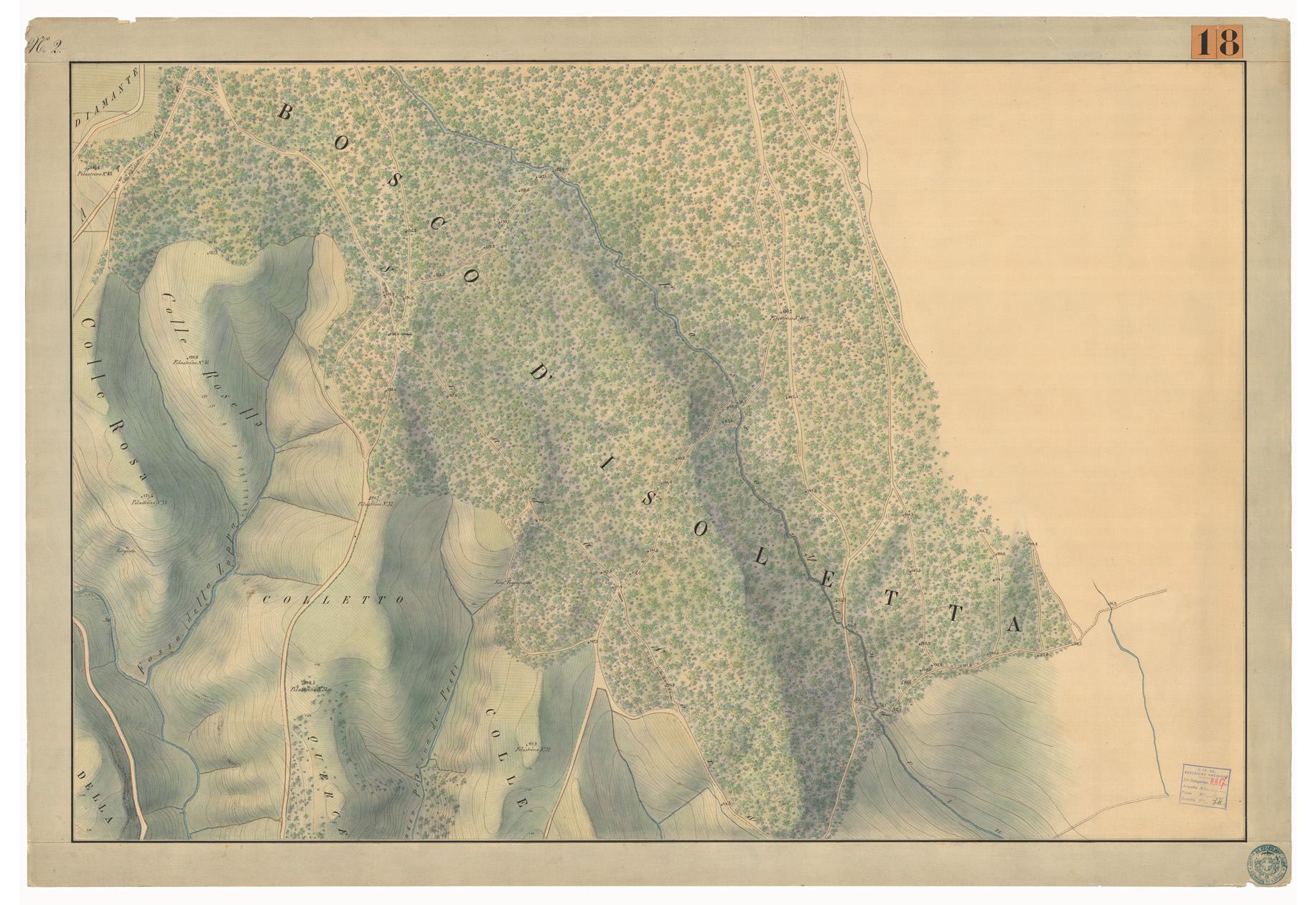 PIANO D'ISOLETTA E DEL TERRENO ADIACENTE A CIRCA UN MIGLIO DI RAGGIO ALLA SCALA DELL'1:2.000, LEVATO PER ORDINE DI SUA MAESTA' (D. G.) NELL'ANNO 1853 DA UFFIZIALI ED INGEGNERI DEL REALE OFFICIO TOPOGRAFICO - FOGLIO 2
