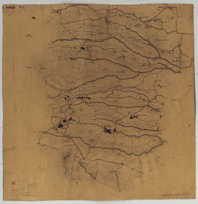 " Sono 88 minite di campagna di misure varie disegnati a colori, gli unici rimasti dopo che nel 1881 tali minute vennero dichiarate inutili da una Commissione appositamente riunitasi. Sono annessi grafici e schizzi."