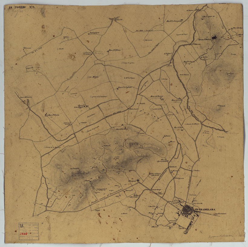 "Sono 88 minite di campagna di misure varie disegnati a colori, gli unici rimasti dopo che nel 1881 tali minute vennero dichiarate inutili da una Commissione appositamente riunitasi. Sono annessi grafici e schizzi. Foglio n. 3"