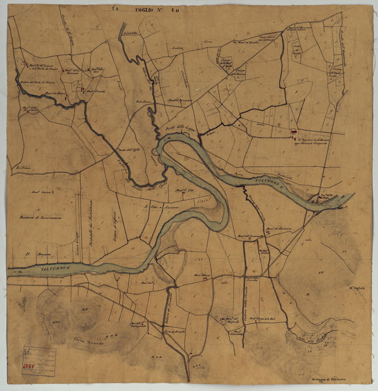 " Sono 88 minite di campagna di misure varie disegnati a colori, gli unici rimasti dopo che nel 1881 tali minute vennero dichiarate inutili da una Commissione appositamente riunitasi. Sono annessi grafici e schizzi. Foglio n. 10"